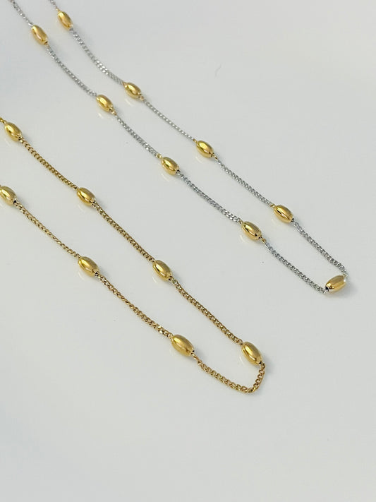 Silver necklace with gold dots