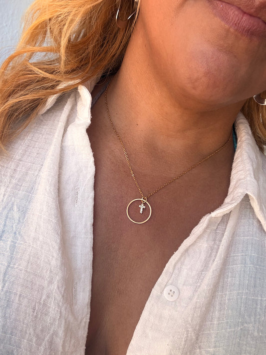 Circle and rhinestone gold necklace