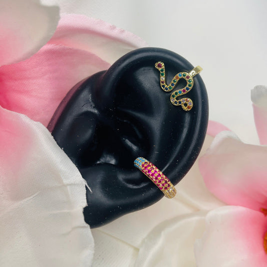 Colored gem Snake ear cuff