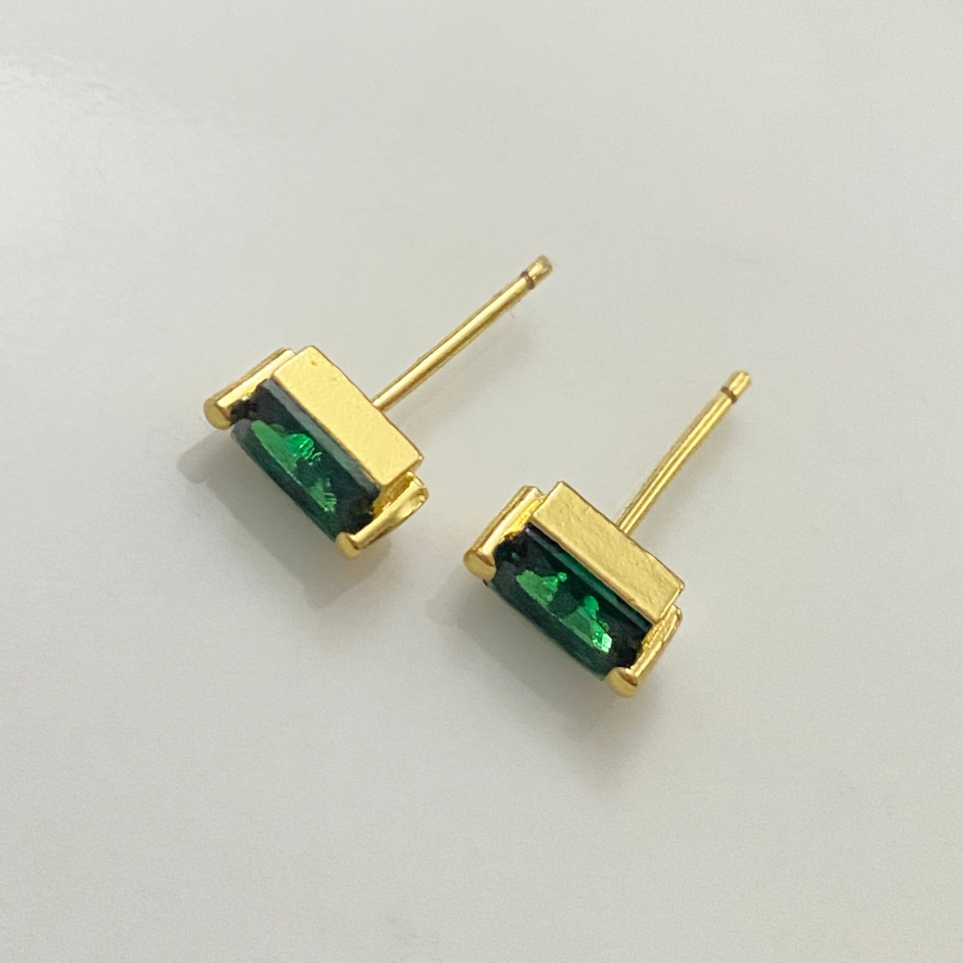 Add a pop of color to any outfit with these green rhinestone studs. Perfect for adding some sparkle and playfulness to your look. Go green with these quirky earrings!